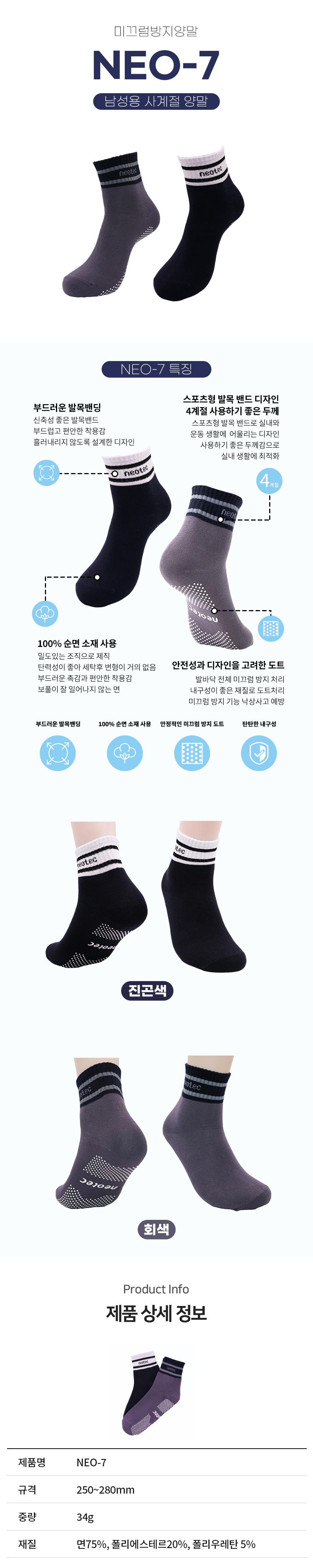 복지용구 미끄럼방지양말 낙상방지 내구성 우수 남성 사계절용 NEO-7