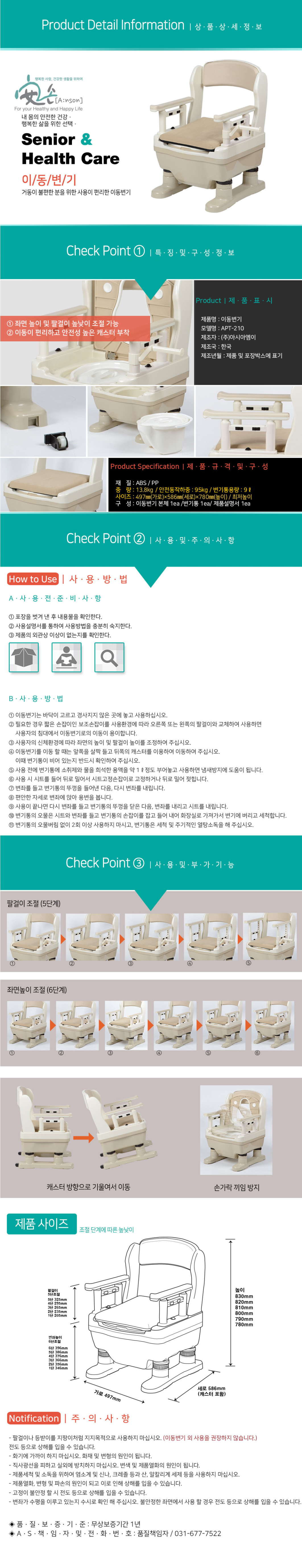 복지용구 이동변기 노인 환자용 높이조절 APT-210