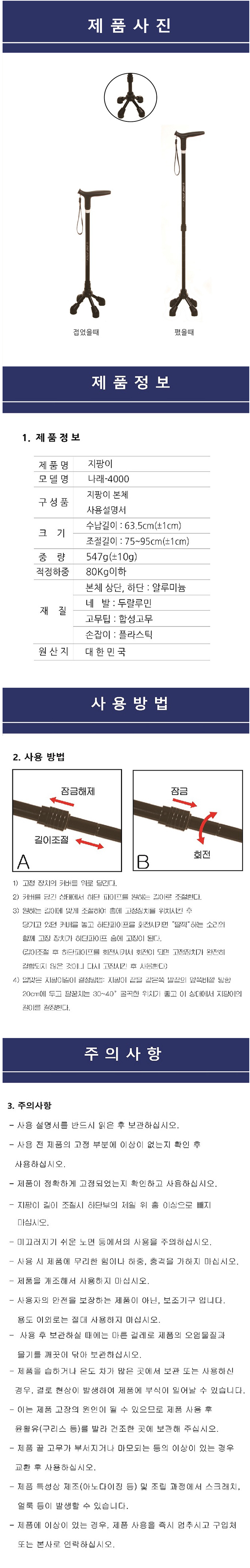 비급여 지팡이 노인 어르신 네발 사발 길이조절 나래-4000