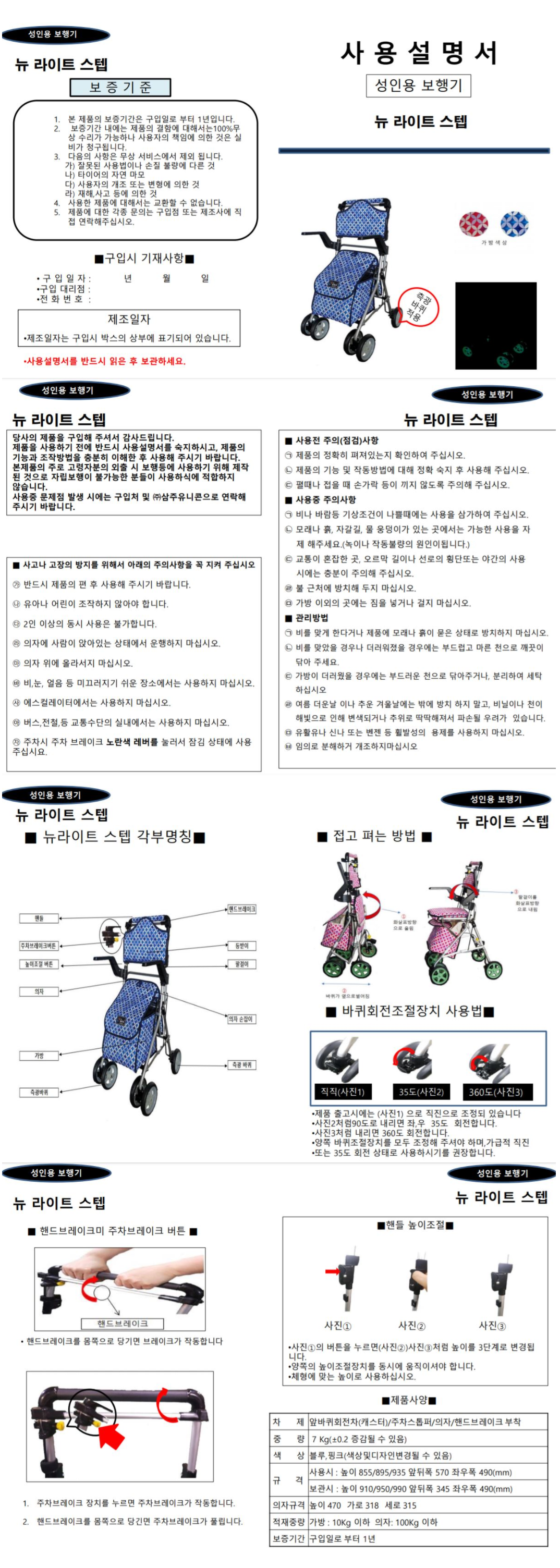 비급여 성인용보행기 실버카 할머니유모차 브레이크 접이식 뉴라이트스텝 장기요양보험