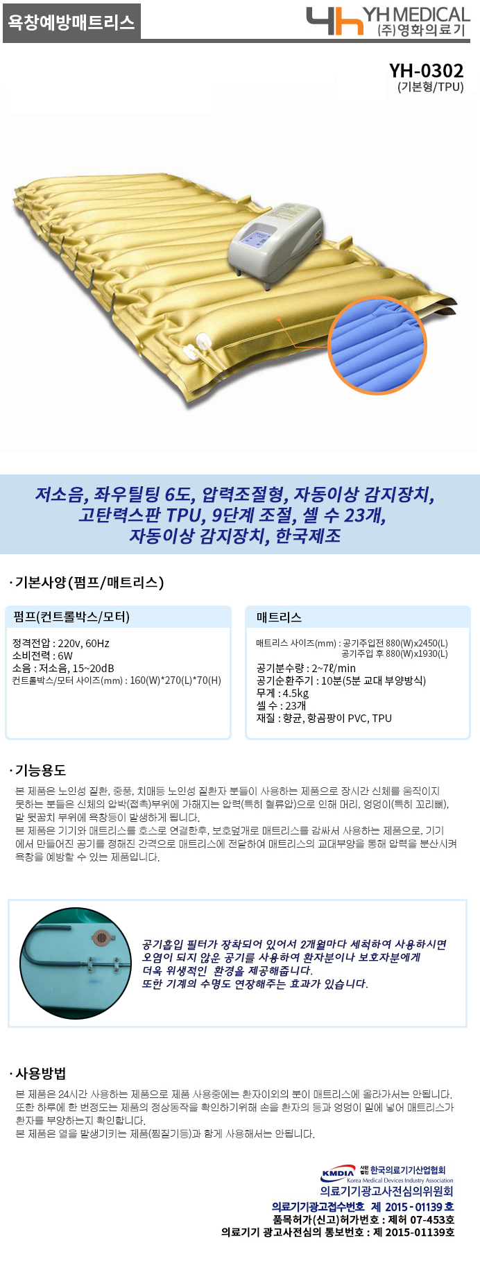 복지용구 욕창방지매트 에어매트리스 와상환자 교대부양 좌우틸팅 YH-0302