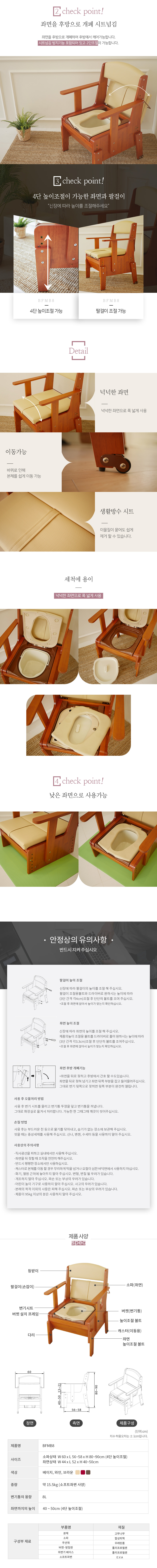 복지용구 이동변기 노인 환자용 높이조절 이동보조바퀴 BFMB8 장기요양보험