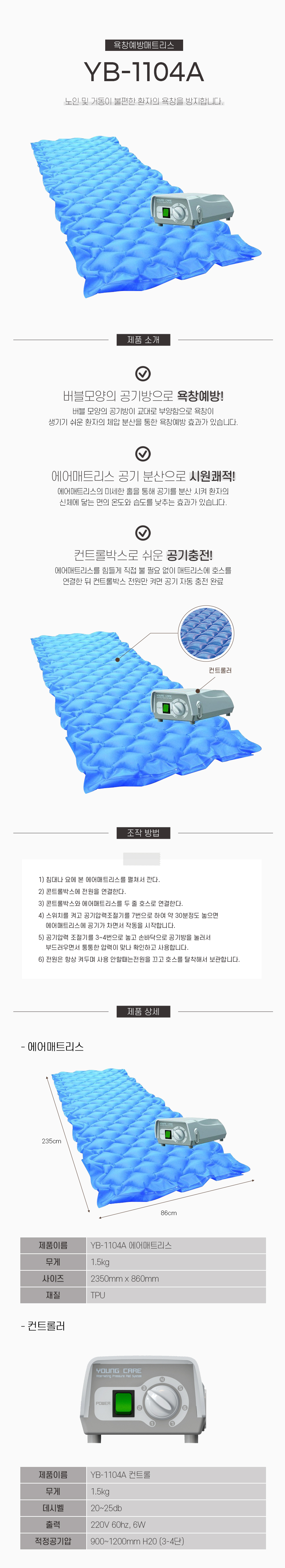 비급여 욕창방지매트 에어매트리스 와상환자 YB-1104A