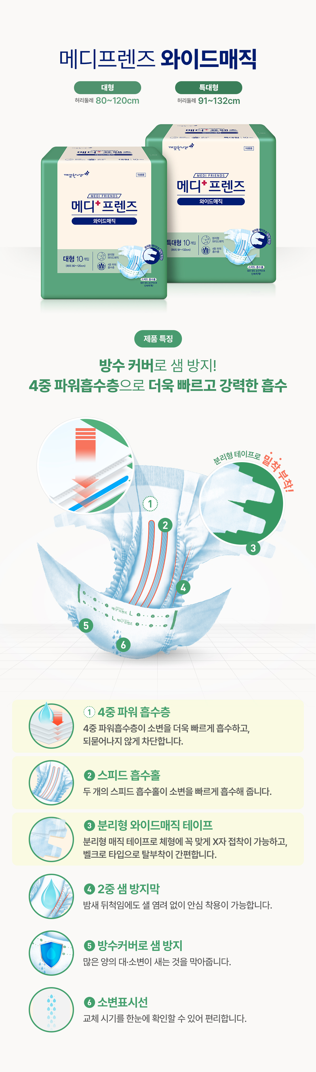 메디프렌즈 성인용기저귀 와이드매직 특대형 10입 x 10팩(100매)