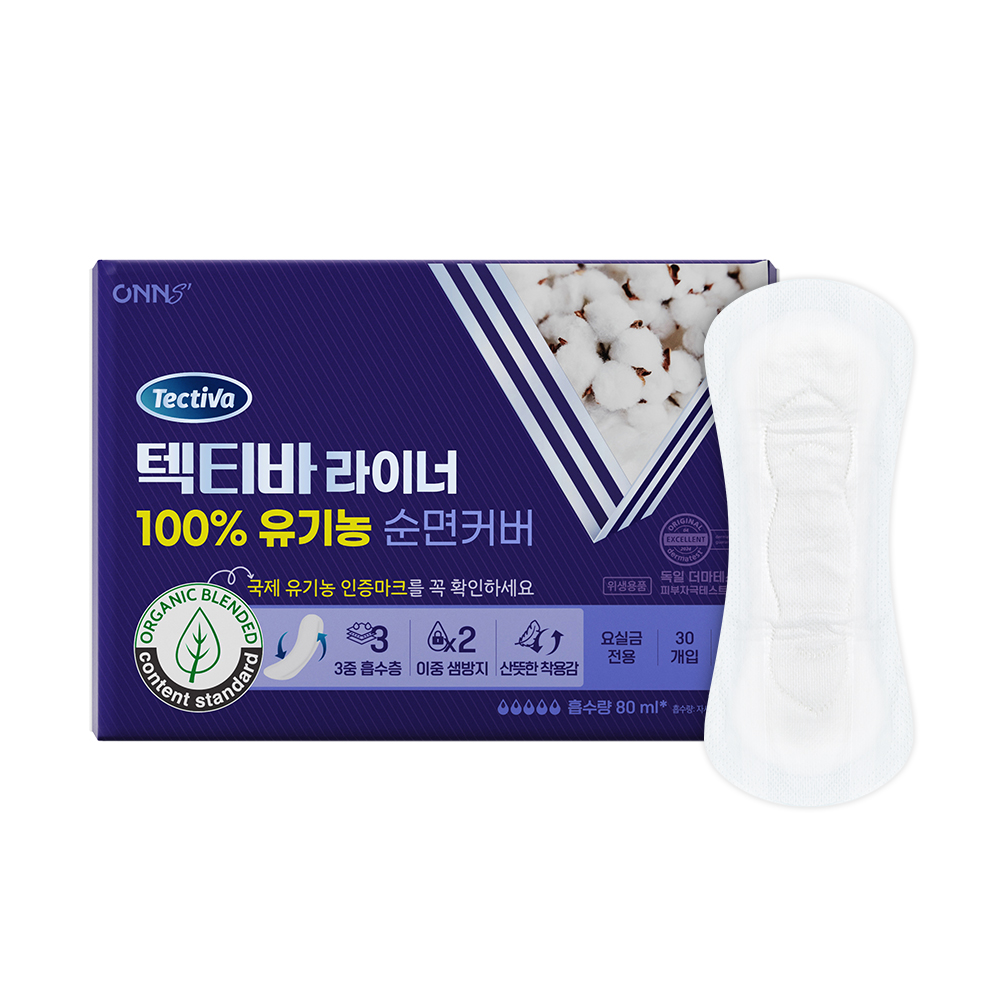 경량 요실금 라이너 여성용 경증 요실금 롱타입 초슬림 디자인 (30개입) 텍티바 순면 감촉