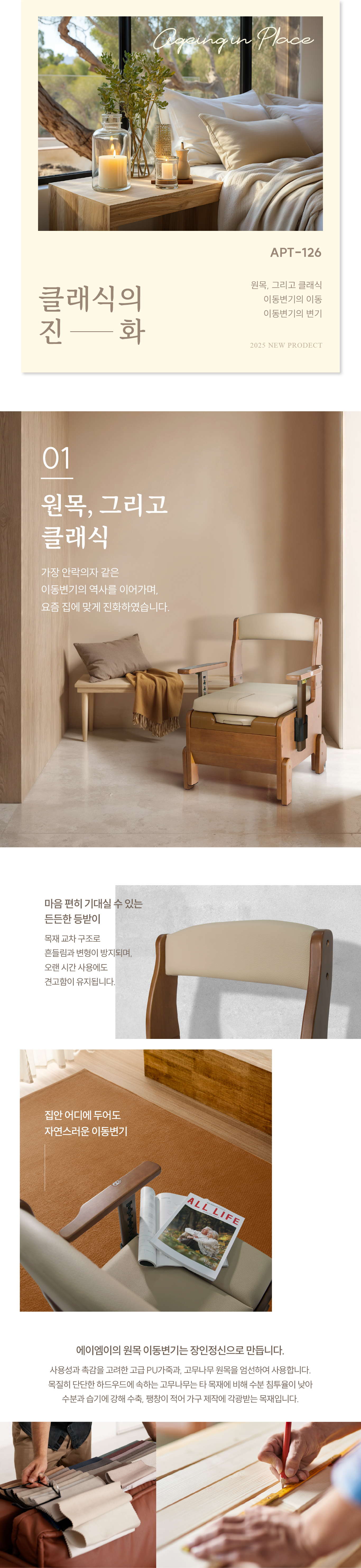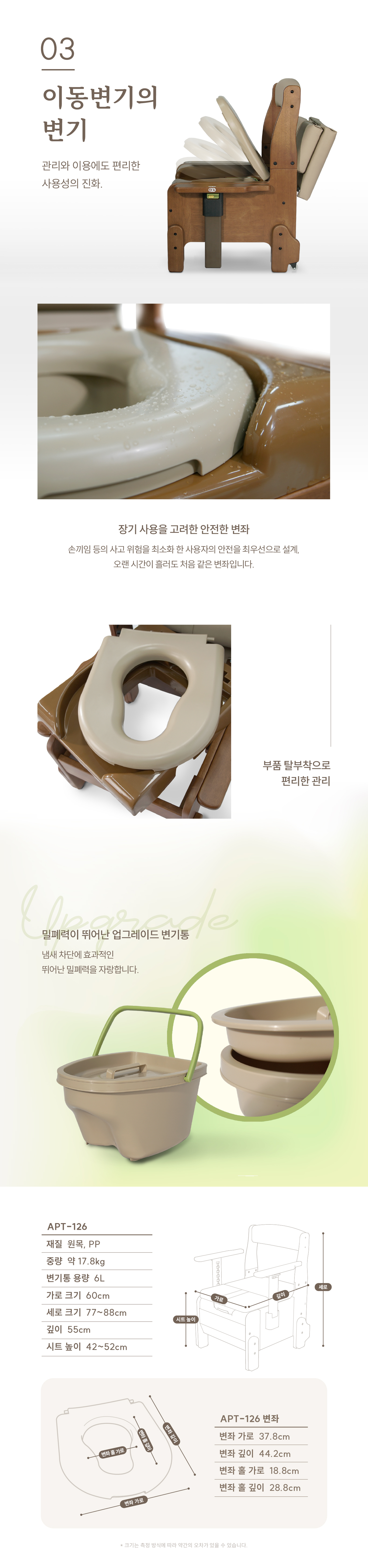 복지용구 이동변기 노인 환자용 높이조절 이동보조바퀴 원목 가구형 쇼파 APT-126 장기요양보험