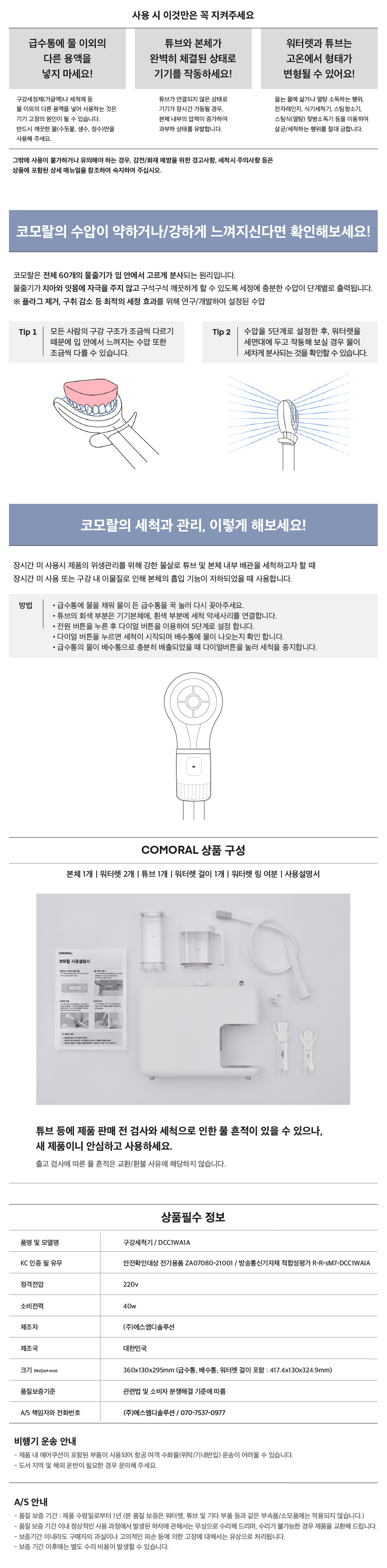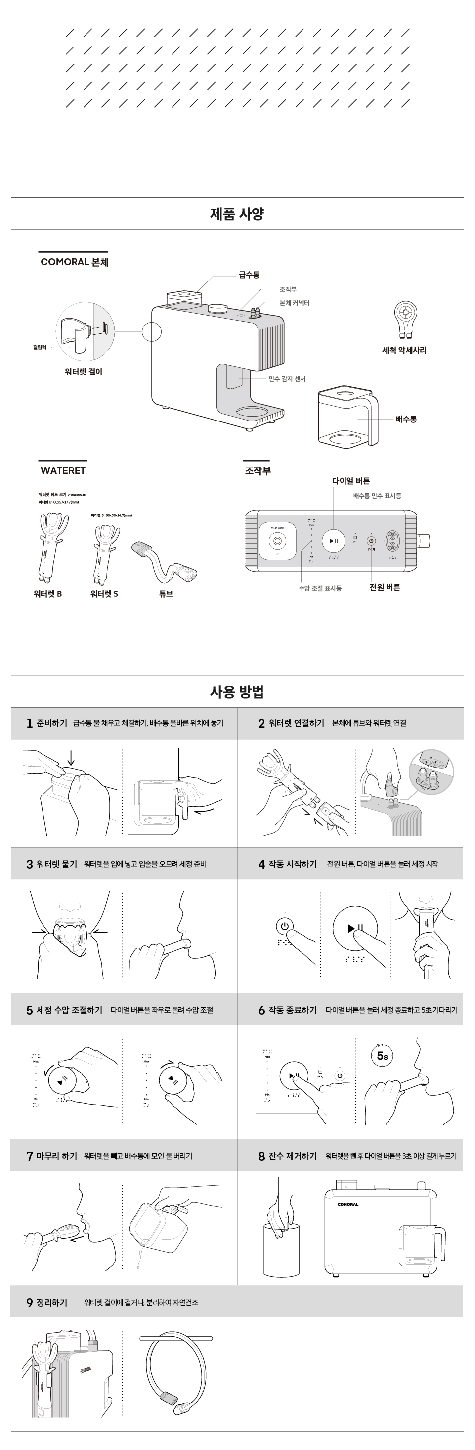 제품의 급수통, 배수통, 튜브 커넥터 등에 제품 판매 전